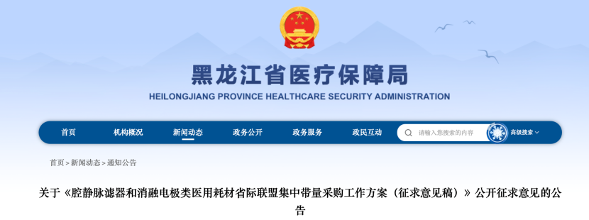 10月15日,黑龍江醫(yī)保局發(fā)布《關(guān)于<腔靜脈濾器和消融電極類醫(yī)用耗材省際聯(lián)盟集中帶量采購(gòu)工作方案(征求意見稿)>公開征求意見的公告》(以下簡(jiǎn)稱《征求意見稿》)。