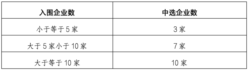 中選規(guī)則方面,根據(jù)《征求意見稿》,同組內(nèi)入圍企業(yè)參與競(jìng)價(jià),中選企業(yè)數(shù)量按下表確定。